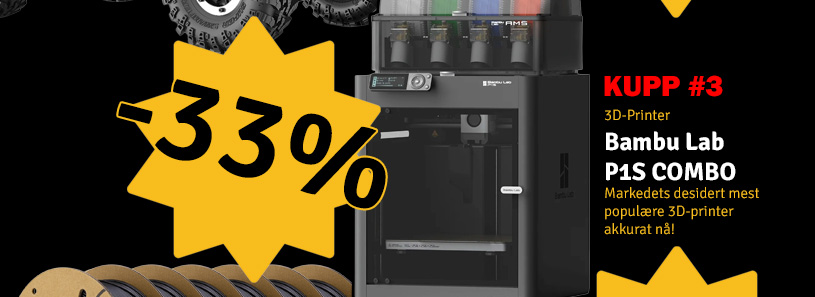 Bambu Lab Black Friday-kampanje! Tilbudet varer til 05.12 Bambu Lab P1S COMBO med AMS är, liksom sin föregångare, en av de ledande höghastighetsskrivarna på marknaden. Inkapslad med en korrekt kylnings