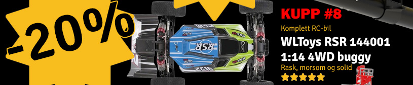 WLToys Buggy RSR i skala 1/14 i grönt utförande med 4WD. Mycket snabb bil med mycket användning av solida aluminiumdelar. Levereras komplett med uppladdningsbart LiPo-batteri och 2,4 GHz rattradio. Bilen är 31 cm lång och har en topphastighet på upp
