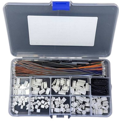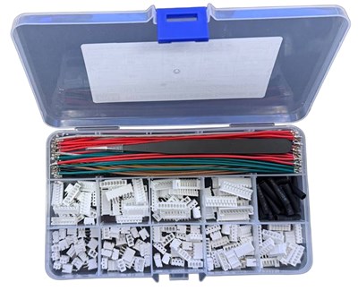 Kit innehållande GH1.25 hankontakter med ledningar med förkrympta kontakter och krympplast.