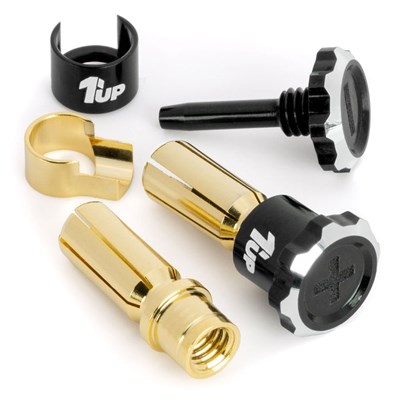 5mm gullkontakter med justeringsmuligheter. Pakken inneholder 2stk med sorte topper.