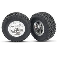 Tires & wheels, assembled, glued (S1 ultra-soft, off-road racing compound) (SCT Split-Spoke chrome, red beadlock style wheels, BFGoodrich® Mud-Terrain? T/A® KM2 tires, foam inserts) (2) (4WD f/r, 2WD rear)