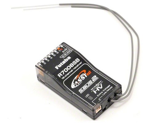 8CH-mottagare för FUTA-radio med FASSTest-teknik, till exempel 18 MZ. Mottagaren har telemetri och två kan användas samtidigt för att göra totalt 16 kanaler tillgängliga. > SPECS: