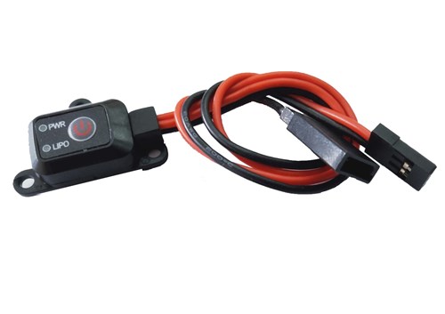 Bekväm digital strömbrytare som låter dig slå på / av strömmen till radioutrustningen på din modell. Strömställaren kan användas för både NiMh- och LiPo-batterier. Strömställaren har tre skruvfästelement för infästning och väger bara 7 gram.