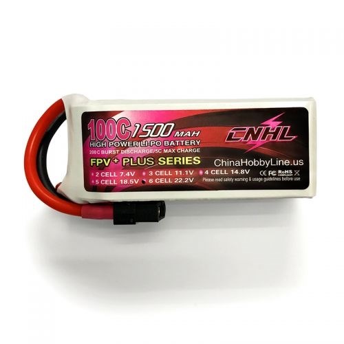 CNHL 5s 1500mAh - 100C - CNHL FPV + Plus med XT60. Batteriet väger 283 gram, har XT60-kontakt och XH-balanskontakt. Storleken är 90x52x35mm