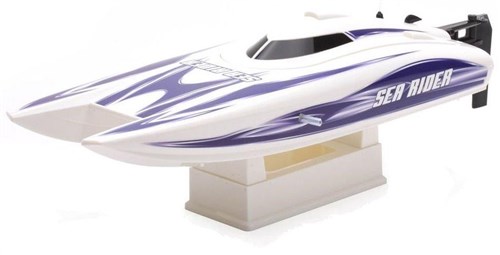 Joysway Offshore Lite Sea Rider är en katamaran som levererar helt komplett. Den har en borstad motor och 15A hastighetsregulator, förmonterad servostyrning och 2,4 GHz radiostyrning så att du inte behöver tänka på störningar eller andra som kör samtidigt.