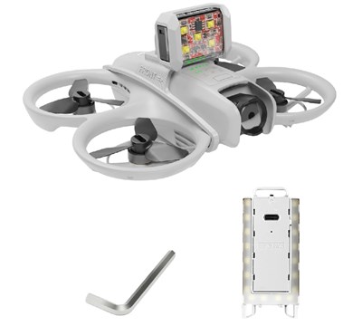 DJI Neo Pro Tactical Spotlight Kit från Firehouse är designat för DJI NEO. Kitet består av en toppmonterad, helt fristående lampa som kan justeras framåt eller vinklas uppåt för stroboskopljus under nattflygningar efter behov. Lampan är av ARC V-typ