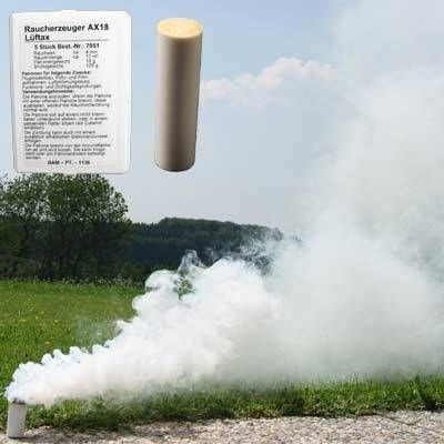 BJ Smoke Cartridge AX-18 - 5st White. Rökpatronen kan antändas med tändare men det rekommenderas att använda ljumma eller elektroniska tändare. Rök varar upp till 4 minuter.