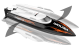 Båten är utformad så att om du är otur och hamnar i vattnet är det inget problem. Genom att först ta det bakre av handkontrollen och sedan full hastighet vänder skrovet runt rätt väg. Detta händer på grund av skrovets snygga konstruktion tillsammans med rotationsstyrkan hos motorn när du applicerar den.
