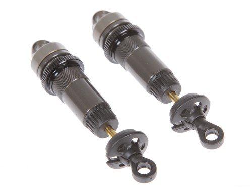The Pro sets include hardcoated shockbodies, hardcoated shockcaps (emulsion/membrame), machined pistons 2-hole 1.3 dia, machined spacers, travel-limiters, pre-oiled x-rings and Tin coated shockshafts.