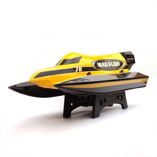 Joysway Mad Flow V2 är en grov katamaran med en toppfart på mer än 55km / h, den har ett skrov med självkorrigeringsfunktion. Mad Flow V2 har en kraftfull vattenkyld borstlös motor och hastighetsregulator. Båten har slitstarkt ABS plastskrov och servostyrning. Båten är helt monterad och levereras med 2,4 GHz radiosändare. Den levereras med ett 3s 2200mAh-batteri och lämplig laddare.