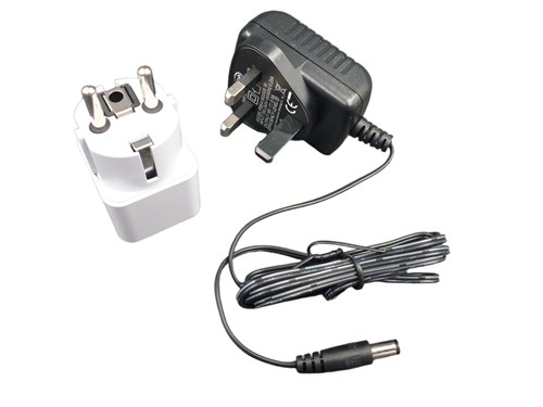 FrSky-laddare 18V för X9E och X12S. Laddaren levereras med en US-kontakt och en adapter för EU-typ.