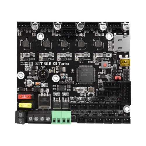 BTT SKR E3 Turbo är ett moderkort för Crealitys Ender 3-skrivare som gör kabelprocessen enklare och snabbare för användaren. Levereras med dubbel extruderchock och förmågan att använda "Parallel Double Z-Axis Interface". Med "Standby-funktionen på TMC2209 minskar du effektivt strömförbrukningen.