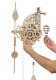 This simple-yet-elegant Ugears clock is driven by the force of gravity pulling down a weighted bag (you can fill the bag with sand or salt). Raise the bag on its pulleys to wind the clock. As the weight slowly descends, it rotates a drive gear, which then rotates an escape wheel through a reducer. The clock features an adjustable weighted pendulum which interacts with the escape wheel through the steady tick-tock of the anchor mechanism. You can adjust the clocks ticking action to the second, by sliding the pendulums top and bottom weights. The reducer also transmits rotation to an hour disc and a minute disc. One of the interesting features of our Aero Clock is that time is not read with rotating hands on a clock face, but rather a fixed pointer indicates time on the slowly-rotating, numbered hour and minute discs. Moreover, these discs rotate counterclockwise?did you know that before standardization, some clocks moved clockwise while others moved counterclockwise? In the role of "cuckoo? the Ugears Aero Clock features a model hot air balloon. The suspended balloon rapidly descends when the hour strikes, then slowly rises again over the course of the next hour.