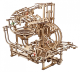 We have designed the Ugears line of marble runs to be modular, that is, each model works as a standalone, or it can be connected frontally or laterally to other Ugears marble runs of the same or different design (2 or 4 models can be connected, in pairs, using the special connectors included in the kit). The rocker mechanism at the end of the run can send marbles in one direction or the other, or in both directions (depending on the attached weight), returning marbles to the original hoist or sending them to a different marble run. With adjoining marble runs you now have an amazing, complex system of interconnected elements, all powered by a single crank. Its like a miniature amusement park! Keep an eye on your favorite marble?who knows where it will end up, when it will return to its starting point, or what rides it will take along the way!