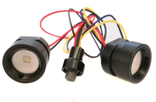 Begge LED-enhetene for Gladius mini S, ferdig med ledninger og kobling for direkte tilkobling i modellen.