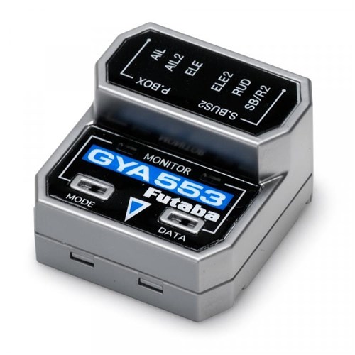 Futaba GYA553 Gyro för Fly, lätt att ställa in och 100% S.Bus-kompatibel. Detta gyro kräver att radiosystemet har 10 kanaler eller fler. Gyrot har ett "återställningsläge" och är utrustat med en accelerationssensor. Gyrot är 6-axligt.