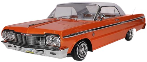 Cool lowrider med detaljerad klassisk 1964 Chevrolet Impala SS-kaross och, inte minst, servostyrt studsande chassi. Med naturtrogna fälgar, omfattande kromanvändning, interiör och realistiskt chassi sticker den här bilen ut i mängden! Bilen levereras komplett med borstmotor, ESC med kraftfull BEC, NiMh-batteri, USB-laddare, 4 servon och radio. Allt du behöver för att köra är 4 AA-batterier till radion.