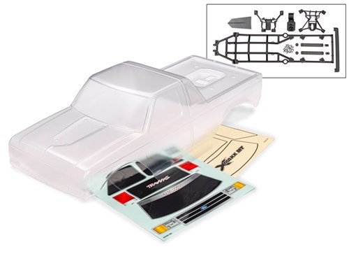 Karossen levereras färdigskuren, med dekaler och maskering, men omålad. Karossen passar X-Maxx MT-chassit med klickfritt fäste.