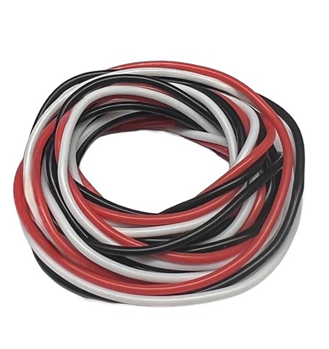 Bronto högkvalitativ silikonkabel. Levereras i förpackningar om 1 meter röd, 1 meter vit och 1 meter svart.