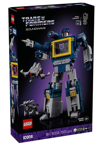 Bygg en fängslande utställningsmodell eller överraska en älskad med LEGO Icons Transformers: Soundwave (10358) inredningsset för hem och kontor, designat för vuxna och fans av den episka science fiction-filmserien. Skapa en detaljerad LEGO-replika av den ikoniska Decepticon-roboten, tillsammans med hans pålitliga medhjälpare Ravage och Laserbeak.