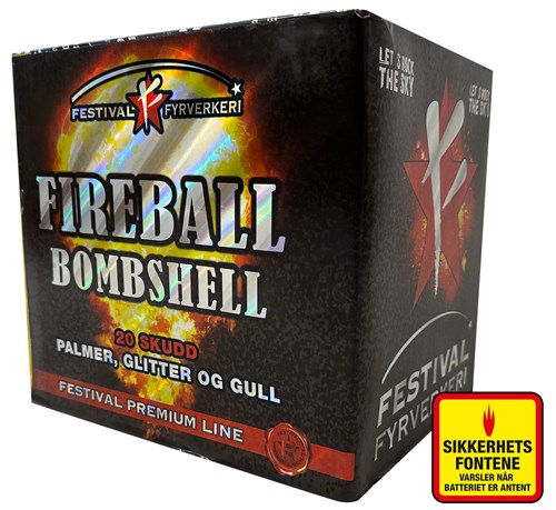 10% rabatt ved reservasjon t.o.m. 28. desember. Bruk rabattkode: GodtNyttÅr Batteri med skikkelig drønn! Fireball Bombshell byr på utvalgte effekter, ladet som profesjonelle bomber, med palmer, gull og glitter. Med batteriet får du 20 skudd og en varighet på ca. 50 sekund.