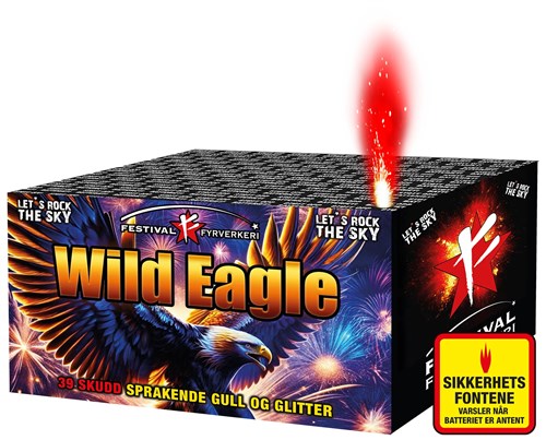 10% rabatt ved reservasjon t.o.m. 28. desember. Bruk rabattkode: GodtNyttÅr Stort batteri med 39 skudd med sprakende effekter og nydelige lys i lilla, sølvblink og en flott finalle i gull. Wild Eagle varer i ca. 40 sekunder.