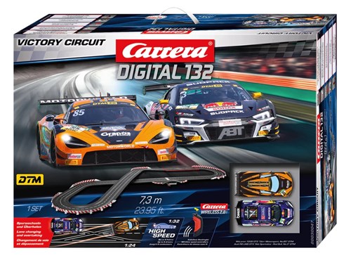 Redo för den ultimata GT3-uppgörelsen? Upplev intensiva dueller med denna digitala racerbana i skala 1:32! Victory Circuit ställer McLaren 720S GT3 mot den exklusiva Audi R8 LMS GT3 i ett spännande race. Här får du en 7,3 meter lång bana med raksträckor, snäva kurvor och tekniska sektioner som kräver exakt timing. Montera banan och på 1, 2, 3 är du redo för action!