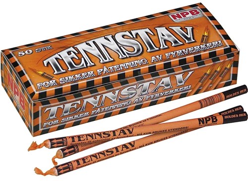 Praktiske tennstaver som er sikkerhetsmessing veldig bra å ha tilgjengelig når du skal tenne på fyrverkeri på den store dagen. Staven har en varighet på ca. 4 minutter.