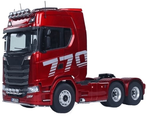 Vacker Scania 770S lastbil i skala 1:14 med flera metalldelar. Lastbilen levereras med en 2-växlad växellåda, difflock-simulerade ljus- och ljudeffekter samt dörrar som kan öppnas och stängas. Scanian väger hela 4,8 kg och känns som en riktig premiumprodukt. Fulladdad kan du köra i ca 1 timme.