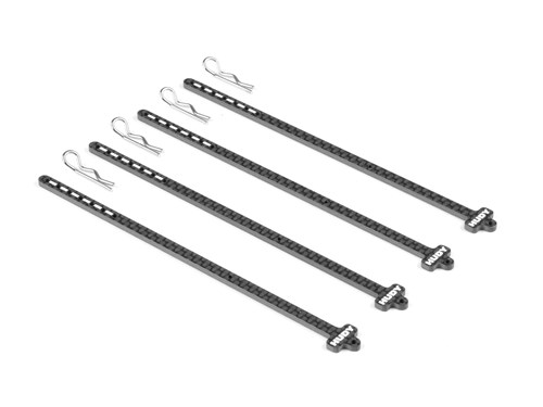 HUDY Carbon Tire Stick 1/10 On/Off-Road Wheels 5mm Hole (4). Karbonstang for praktisk og ryddig oppbevaring av off-road og on-road dekk. Passer 5 mm hull og leveres i et sett med fire stenger med klips, slik at dekkene holdes sikkert samlet på pitbordet. Laget i karbon for lav vekt, høy slitestyrke og et rent, profesjonelt uttrykk.