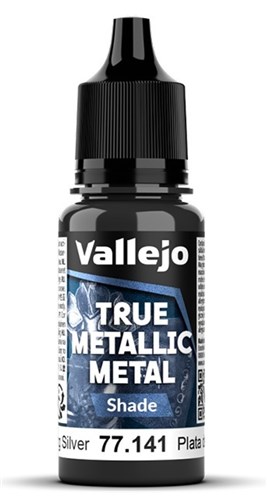 Vallejo TMM-serien (True Metallic Metal) är en specialutvecklad akrylfärg för modell- och miniatyrmålning. Skuggfärgerna är icke-metalliska, men utvecklade med pigment som ger ett metalliskt uttryck och bevarar glansen i baslagret. Används för att skapa skuggor, djup och kontrast, och är mellansteget i Base-Shade-Light-systemet. Skuggfärgerna kan spädas ut med vatten för mer subtila skuggor och övergångar. För dig som vill ha metallytor med ett autentiskt uttryck.