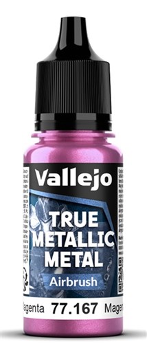 Vallejo TMM-serien (True Metallic Metal) är en specialutvecklad akrylfärg för modell- och miniatyrmålning med airbrush. Färgerna är kromatiskt matchade med basfärgerna och ger en slät yta med hög färgintensitet på metallytor. Färgen är färdig att användas direkt från flaskan, men kan spädas ut med Airbrush Thinner för mer subtila effekter. För dig som vill ha metallytor med ett autentiskt uttryck.