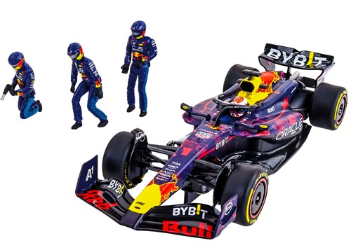 Oracle Red Bull Racing RB20 "M. Verstappen, No.1" Silverstone 2024 - Special EditionHer får du RB20 med den originale spesiallakkeringen brukt under Silverstone 2024. Bilen leveres i en dekorativ metallboks som passer perfekt til både oppbevaring og utstilling. I tillegg får du tre pit crew-figurer i Red Bull-design, slik at du kan skape stemningen fra depotet hjemme på banen. Red Bull Digital bilbanebil i 1:32 skala, kan brukes på Carrera digitale bilbaner.