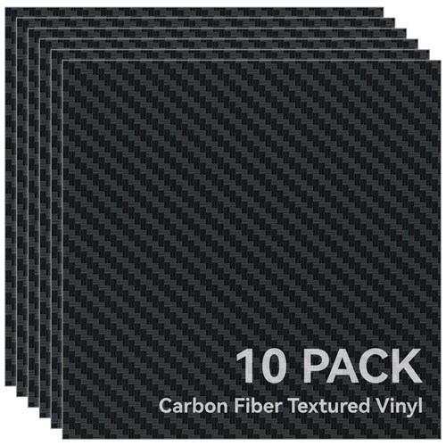 Bambu Removable Acrylic Vinyl Carbon Fiber, avtagbar vinylfolie som gör det enkelt att ge vardagliga föremål en personlig och snygg touch. Paketet innehåller 10 ark à 300x300 mm, vilket ger gott om material för både små och stora projekt - oavsett om du vill dekorera flaskor och lådor, göra skyltar och etiketter eller sätta din egen design på elektronik. Vinylen är vatten- och UV-beständig. Används på knivskärare.