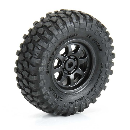 Proline BFGoodrich Krawler T/A KX Front / Rear Mounted Black Icon hjul og dekk for Axial SCX30. Kommer ferdig montert, og gir et tydelig skalauttrykk tilpasset crawling. Dekkene er tilpasset crawling, tekniske spor og generell skalakjøring hvor grep, enkel montering og et realistisk uttrykk er viktig.