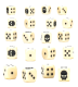 Tärningarna är gjorda av elfenbensfärgad akryl med svarta markeringar och mäter 12 mm per sida. Sidorna 1-5 har traditionella prickar, medan varje 6-sidig sida är markerad med en ikonisk symbol.