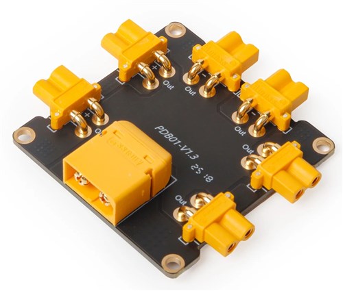 Power Distribution Board (PDB) med XT30 ferdig loddet, utviklet for bruk med PM02 og PM02D power module. Gir enkel tilkobling og ryddig installasjon i kompatible oppsett.