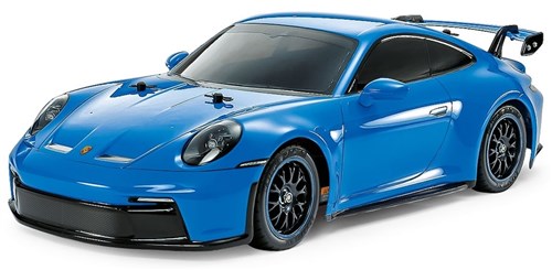 Byggesett av Porsche 911 GTR (992) med Tamiya TT-02 Chassis. Kitet leveres med et ferdiglakkert karosseri i blå og en 540 motor. Du behøver resterende elektronikk, se anbefalt tilbehør.