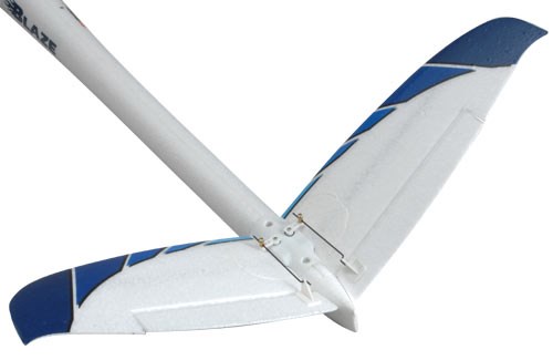 The wing is a work of art! Three internal carbon spars (one a super-strong, square tube) are all bonded in internally and provide unbelievable strength to what is just a foam wing. You will not see it even bend slightly in flight. Once again, the wing joining method is designed not to have a stress fulcrum and be both simple and effective. Just four screws will have it assembled in five minutes! Individual aileron servos provide the power to perform full aerobatics and the ailerons themselves are re-inforced with carbon strips to stop flexing. The anti spill airflow straighteners at the aileron ends keep the aileron response effective at all speeds. Remember, the Blaze had them first!
