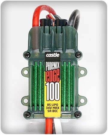 *RC HOBBY APPLICATION RATING: 100 amps for the duration of a single 5,000 mAh battery pack with the ESC in contact with a 5 mph airflow of 25C (77F) or cooler air. Controller temperature must never exceed 100C (212F). Exceeding current or temperature ratings may damage components and may shorten the life of the ESC. Always verify system current draw at full-throttle. Decrease load or increase airflow to decrease the ESC?s operating temperature.